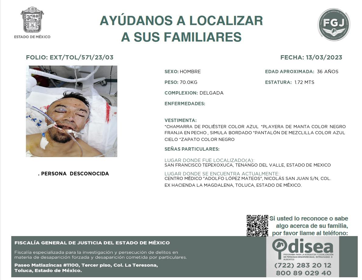 NO PROPORCIONA NOMBRE POR SU ESTADO INCONCIENTE