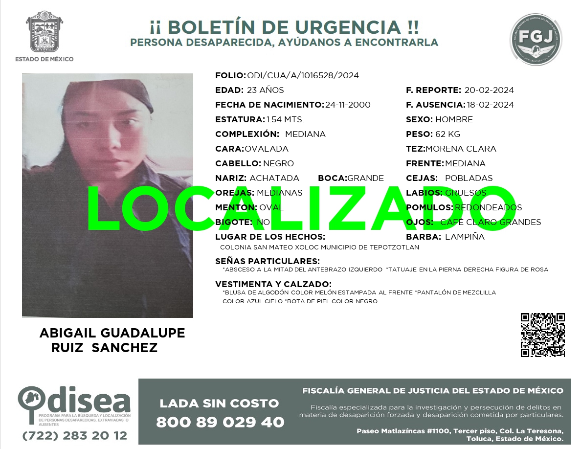 PERSONA LOCALIZADA