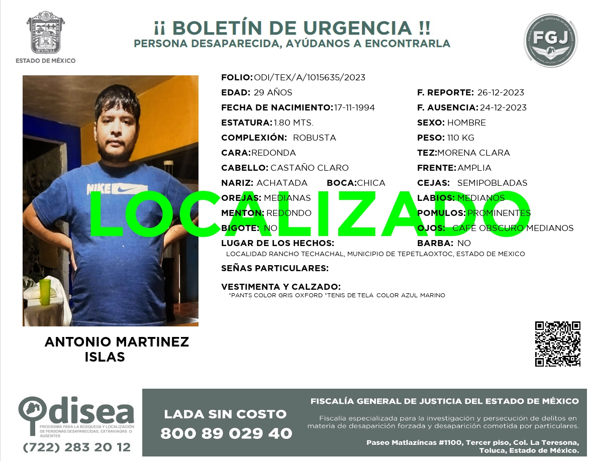 PERSONA LOCALIZADA