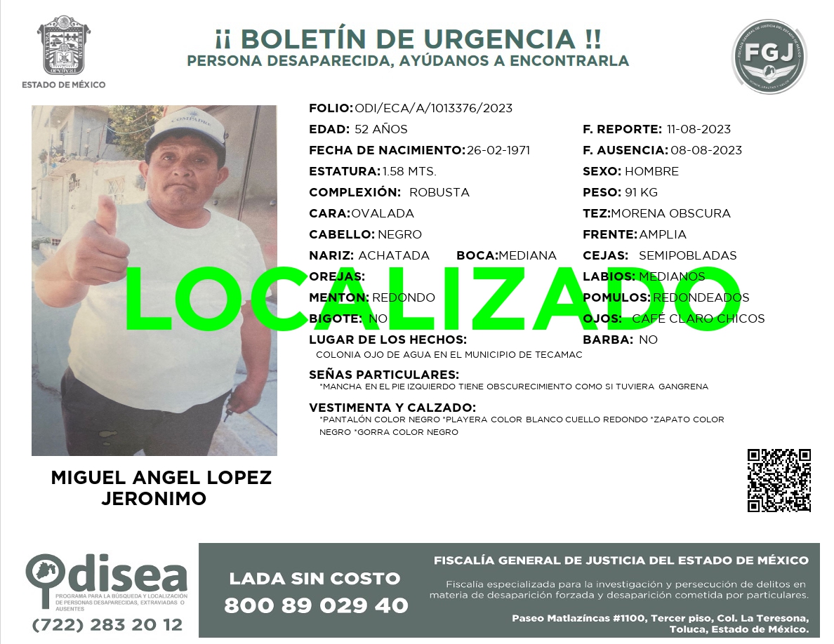 PERSONA LOCALIZADA