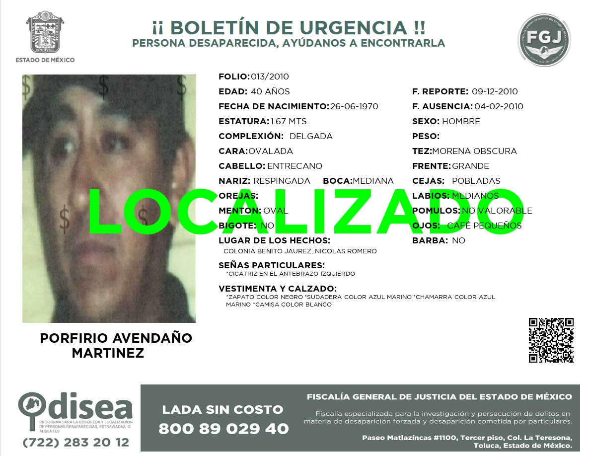 PERSONA LOCALIZADA